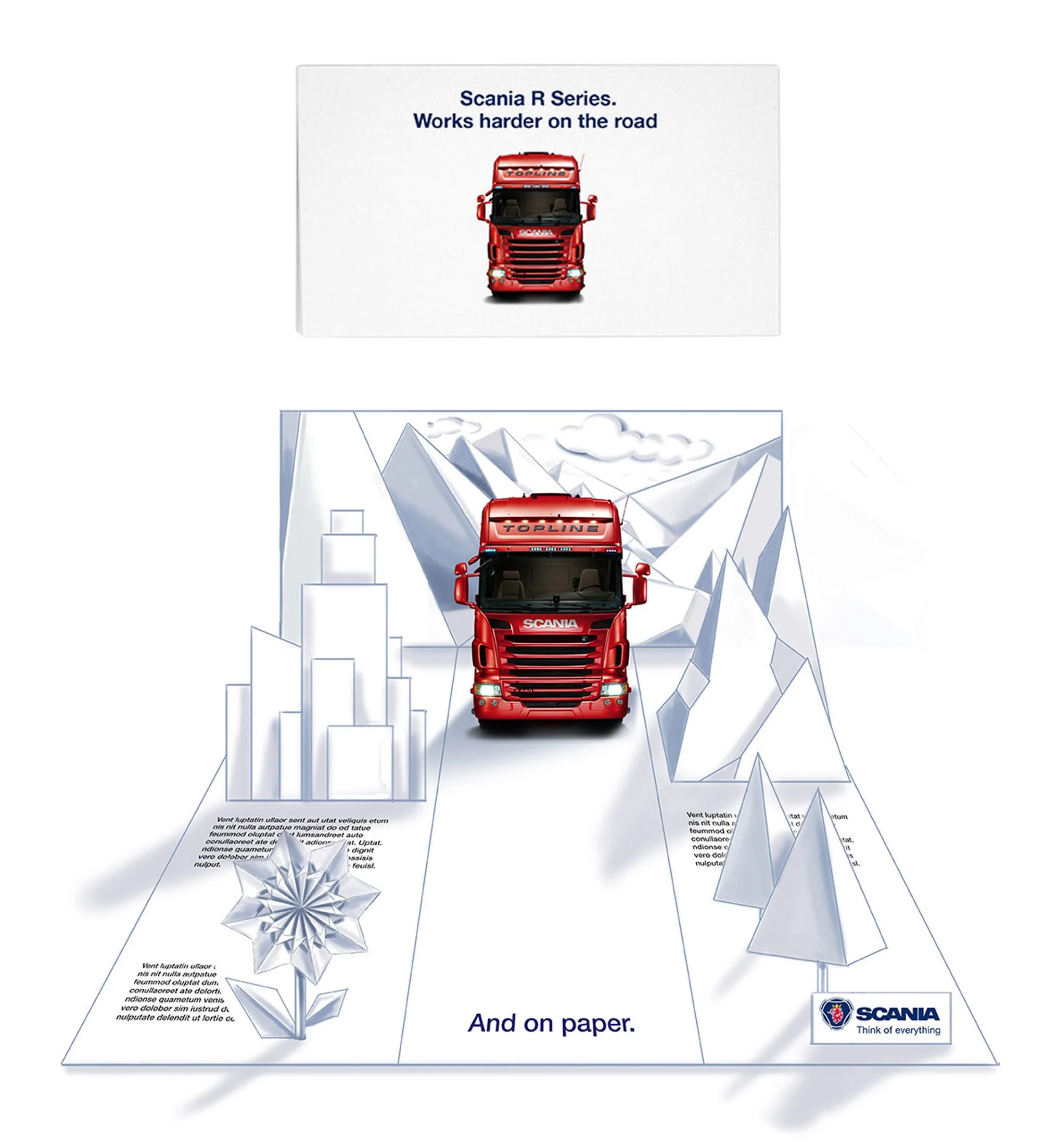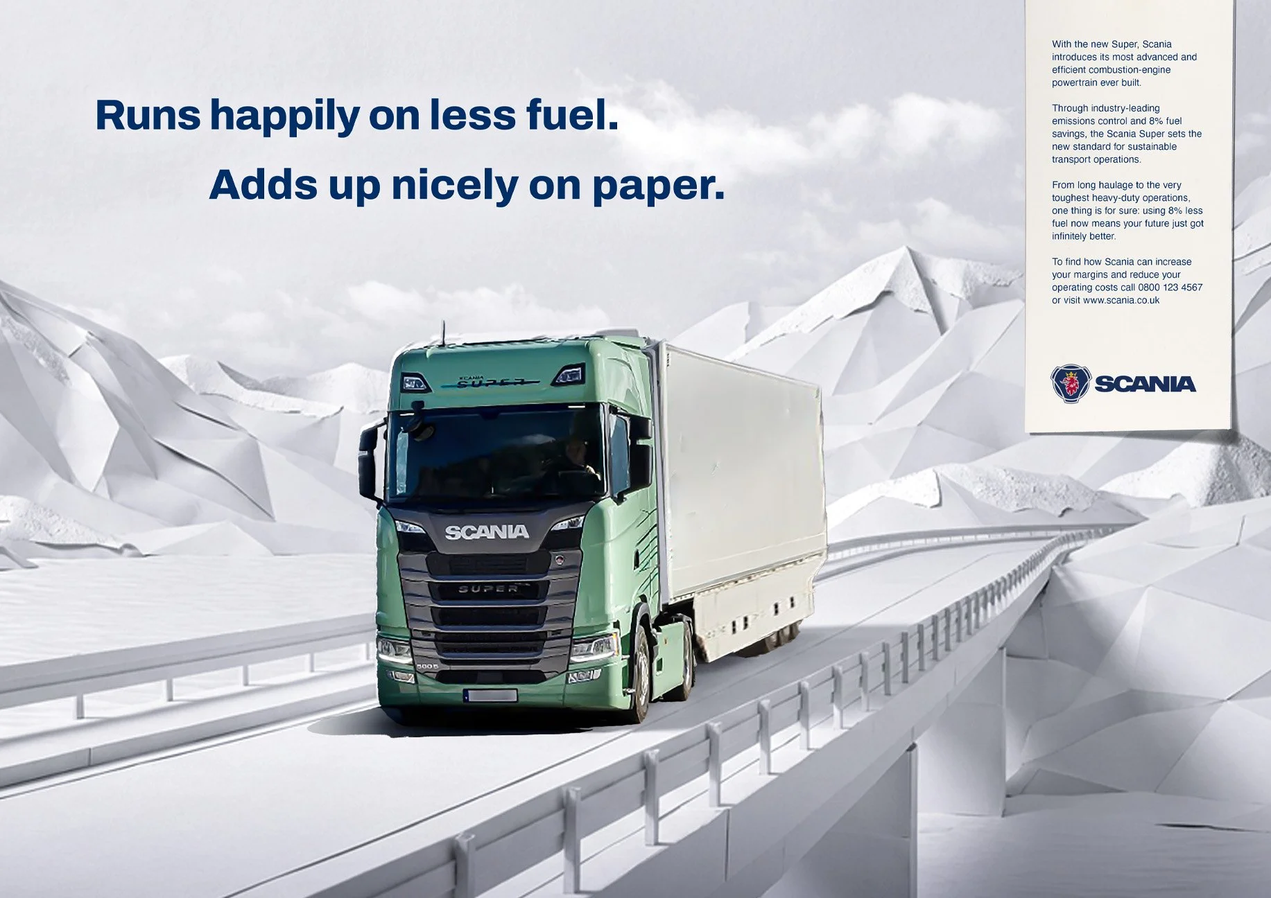 Trucks aren’t bought by drivers, they’re purchased by FDs. To convince them that Scania is a good investment, we created a striking campaign that seeded the idea that you need to see how good they are on paper first.